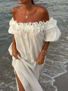 Βανέσα | Λευκό Μακρύ Φόρεμα Chic – Ροή Κόψιμο Και Μινιμαλιστική Κομψότητα