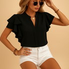 Audrey | Naisten pusero, jossa on röyhelöitä ja tyylikäs V-pääntie