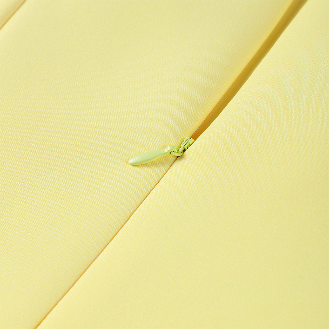- Pitkä laskostettu hame, joka tarjoaa hoikan ja sulavan siluetin.