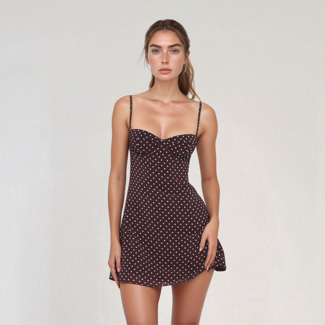 ביאטריס | שמלה קצרה עם נקודות – דגם שוקולד לסגנון וינטג' שיק
