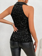 שארלין | טופ ללא שרוולים עם צווארון טי – אפקט מבריק וסגנון אלגנטי