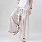 Ez a bő nadrág, amely a hagyományos japán öltözködés ihletésével készült, kivételes mozgásszabadságot kínál. Folyékony szabása és elegáns redők kifinomult hangulatot adnak stílusának. Tökéletes mindennapi használatra, harmóniában ötvözi az autentikusságot és a praktikusságot.