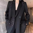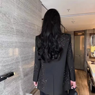 Ez a fekete dzseki a modern eleganciát testesíti meg, finom csillogással. Csillogó részletei kifinomult hangulatot adnak megjelenésének, anélkül, hogy túlzásba vinné. Tökéletes egy elegáns estélyhez vagy egy diszkrét, professzionális megjelenéshez, ötvözi a visszafogottságot és a ragyogást.