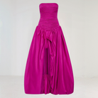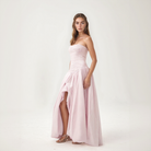 Questo abito lungo svasato seduce per il suo scollo dritto e il suo corpino arricciato che snellisce la silhouette. L'orlo a sbuffo aggiunge un tocco di volume e leggerezza ad ogni passo. Ideale per occasioni eleganti e serate formali.