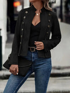 - Decoratieve knopen aan de voorkant en op de mouwen voor een uitgesproken stijl.