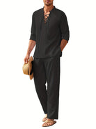 Duik in de ontspannen elegantie met deze bohemian chique set, bestaande uit een lange mouwen top versierd met een strik bij de hals en een luchtige broek met een ruime snit. Ideaal voor zonnige dagen of ontspannen uitjes, deze set combineert stijl met comfort. De lichte snit, praktische zakken en verstelbare taille maken het een keuze die zowel esthetisch als functioneel is.