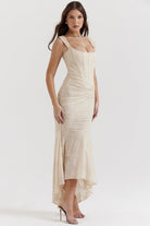 Deze kant jurk biedt een elegante en verfijnde silhouet. Perfect voor uw speciale gelegenheden, combineert het comfort en stijl. Beschikbaar in verschillende maten om zich aan te passen aan alle lichaamstypes.
