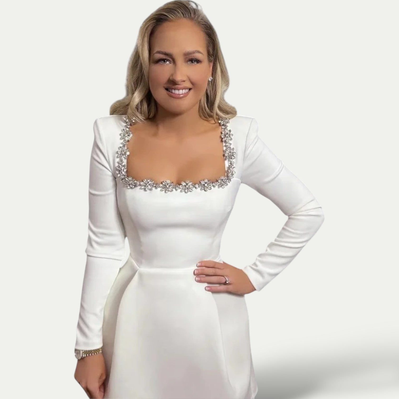 Ta sukienka z kwadratowym dekoltem ucieleśnia doskonałą równowagę między prostotą a wyrafinowaniem. Jej strukturalny krój podkreśla sylwetkę, podczas gdy długie rękawy dodają ponadczasowej elegancji. Idealna na eleganckie okazje lub wieczorne wyjścia.