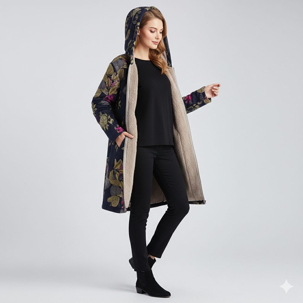 Sanae | Women's Hooded Winter Jacket — Soft Warmth & Floral Style