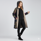 This hooded winter jacket wraps the body in gentle and comforting warmth. Its plush lining effectively protects against the cold while providing a feeling of well-being with every movement. With its elegant floral patterns, it adds a touch of femininity and natural style to your winter days.