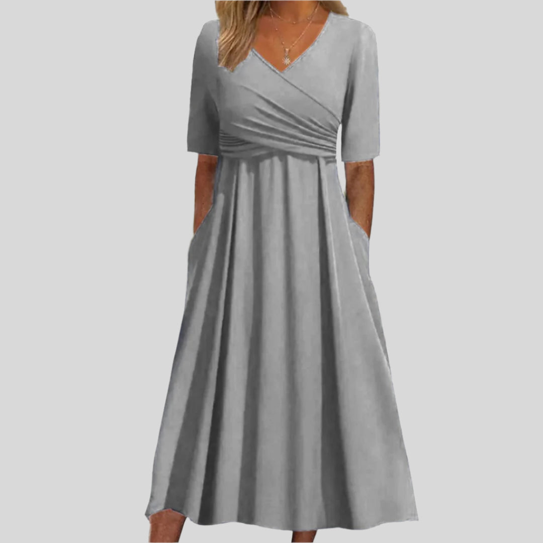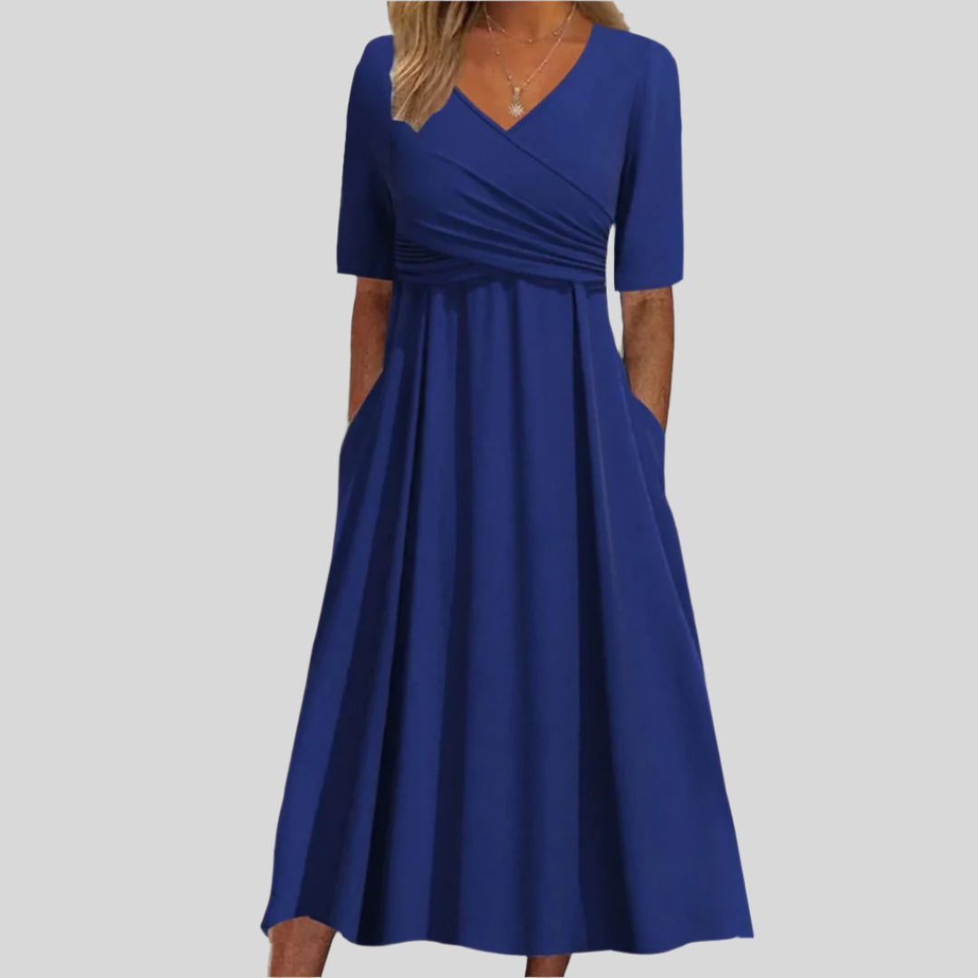 Faustine | Dlhé šaty s prekrížením a krátkymi rukávmi