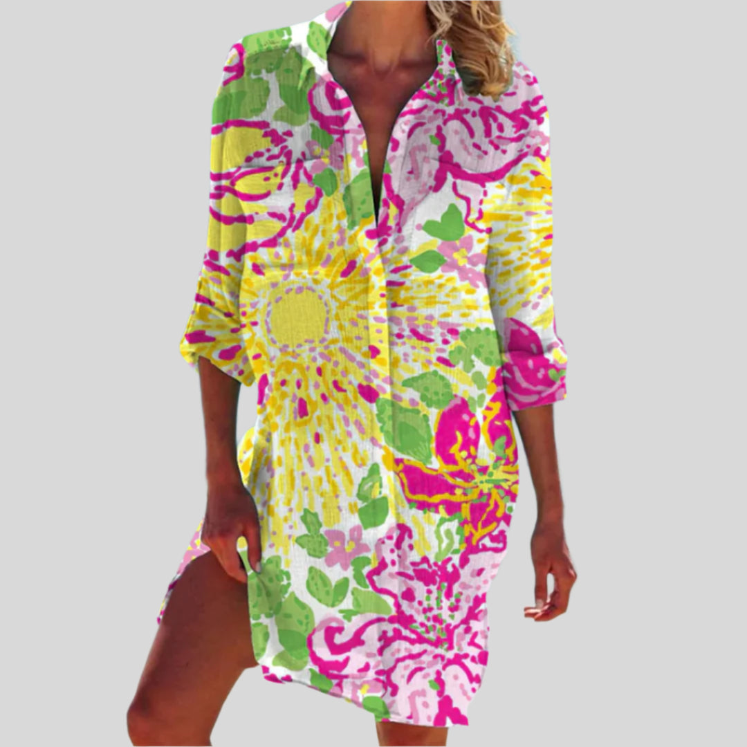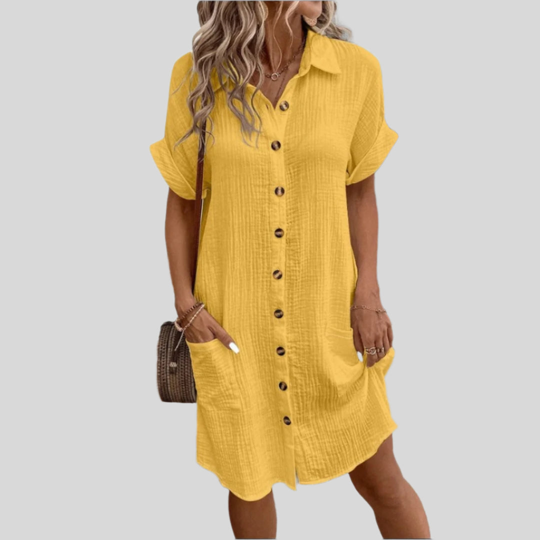 Olivia | Letná šaty s gombíkmi a dlhými rukávmi